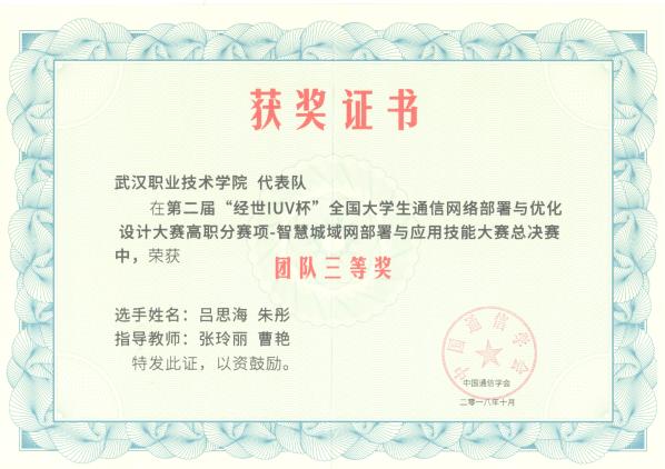 肖文波:tyc539太阳集团通信技术专业2014届毕业生,2013年作为参赛队队长,代表公司参加全国职业技能大赛高职组“LTE组网与维护”赛项获得全国二等奖。毕业后通过自己的努力考上法国巴黎高等电子公司的信息专业,此专业排名是全法国第二,现任职于法国第二大运营商,从事通信工程师工作。