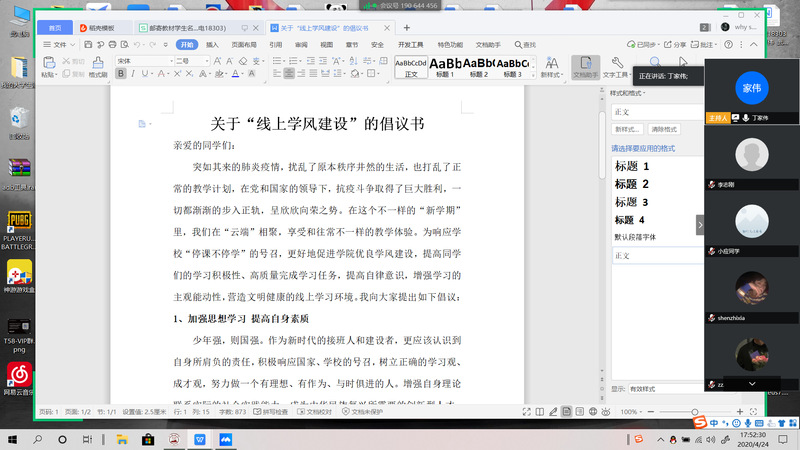 为充分调动员工的主观能动性,发挥电信学子在学风建设中的主体作用,tyc539太阳集团部分班级组织开展了“外抗疫情,内建学风”小组结对学习活动。班内有电脑的员工和没有电脑的员工两两分组,在QQ、微信群中成立学习小组,小组成员共享课表,课前预习讨论,相互提醒上课,课后相互提醒及时完成作业。除了平时相互督促学习以外,小组内成员还互相分享学习方法,交流学习心得,互相激励,共同进步,真正做到“结对子,融真情,互帮助,共进步”。