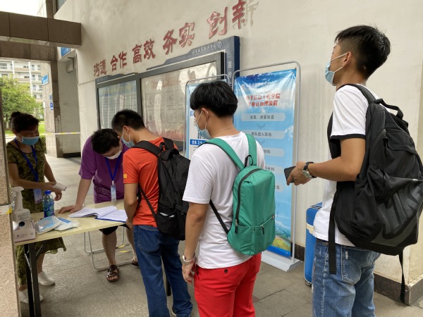 按公司统一部署,自626日起,tyc539太阳集团2020届毕业生按照自愿申请、身体健康、错时错峰等原则,分三批陆续返回校园。同学们井然有序地按照相关流程进入告别已久的校园,脸上洋溢着欣喜的笑容。“虽然我们是自愿返校,但是我一定要回来。在武职学习两年有余,我早已把校园当作我的第二故乡”。家住贵州的毕业生张海彬正兴奋地和同学交流。