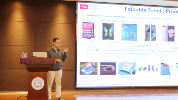 (通讯员 史可 朱悦坤)大家用过折叠手机吗?折叠手机上的OLED 屏幕大家有关注吗?OLED屏幕的发展前景又如何?10月22日下午,TCL武汉华星光电技术有限公司的韩籍专家STEVEN先生应邀到公司凌峰楼C11开展《半导体之OLED行业发展及前沿技术》主题讲座。本次讲座采用线上线下相结合的方式,由公司经陈晴主持,公司全体教师及相关专业员工共计200余人到场聆听,通过腾讯课堂进行直播,近300人次同步线上观看。