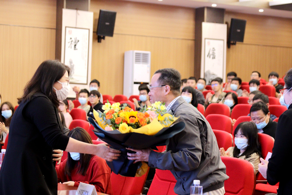 韩籍专家STEVEN先生从OLED 屏幕的发展趋势应用场景市场OLED 屏幕的关键技术三个方面进行解读,讲解了面板行业的尖端技术,并简要介绍了三星、京东方、华星、索尼、苹果等公司在OLED 屏幕柔性面板方向的研发情况。STEVEN先生逐一展示对折屏、三折屏、四折屏的应用场景OLED 屏幕技术等相关内容与参会师生和观看直播的听众进行交流互动,并提出OLED 屏幕未来将向大屏、可柔性与其他技术(摄像头、指纹、传感器)叠加的观点他说:OLED 屏幕市场增长率高,每年增长不低于10%市场前景很乐观相关专业的员工就业空间很广阔”STEVEN先生鼓励在场的电信学子们努力做有智慧的研发工程师,讲座在师生代表向steven先生献花后落下帷幕。