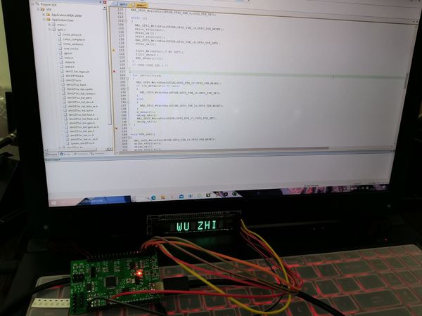 植入程序后VFD屏幕上亮起” WU ZHI”字样