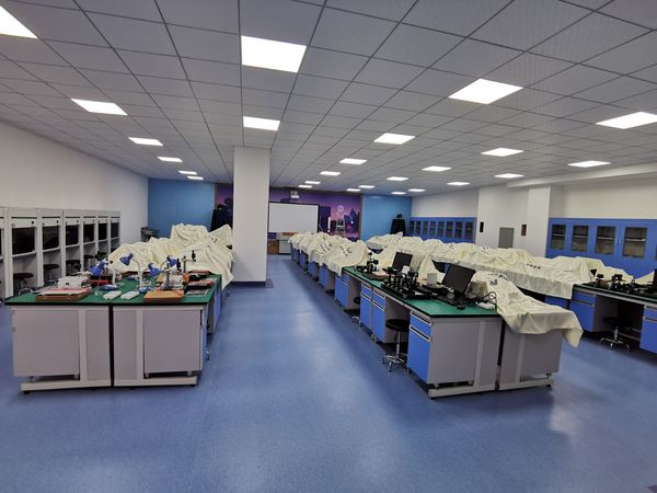 光学工艺技研室改造是公司光电技术应用高水平专业群建设项目之一。改造之前的光学工艺技研室是2007年在国家示范性专业建设中为“光学零件的加工”课程而建设的生产型实训室,教学内容主要是光学零件的冷加工工艺及设备的操作,而在光学元器件的检验与装配方面的实训岗位一直是个缺口。为使教学内容与企业岗位工作内容接轨,此次光学工艺技研室升级改造项目主要是增加光学元件的检验、光学系统装配与系统检验、光学薄膜设计与镀膜检测方面的实训工位。