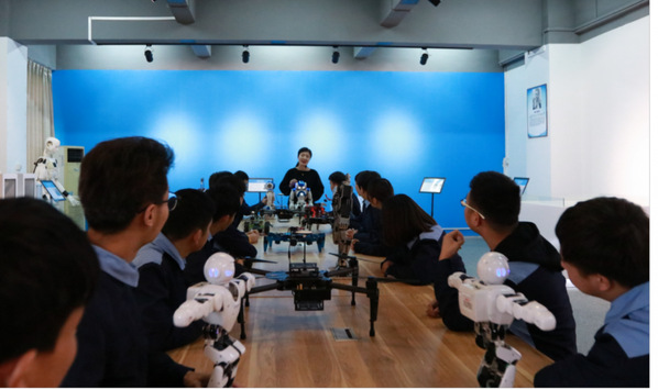 机器人技术教育中心现有NAO机器人,ALPHA舞蹈机器人、仿真迎宾讲解机器人、大疆无人机、创新实训机器车、仿生机器人、仿生机器狗等多种型号形式的机器人。还有由员工自己组装的机器车,能够从多方面开展机器人方面的教学、科研等工作。