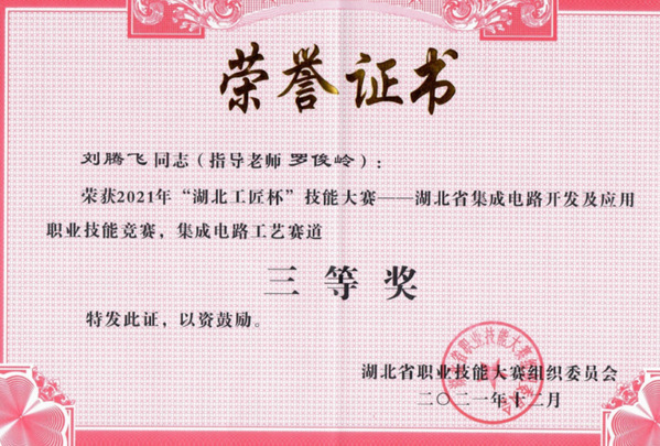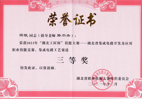 2021年集成电路开发及应用全国技能大赛荣获三等奖