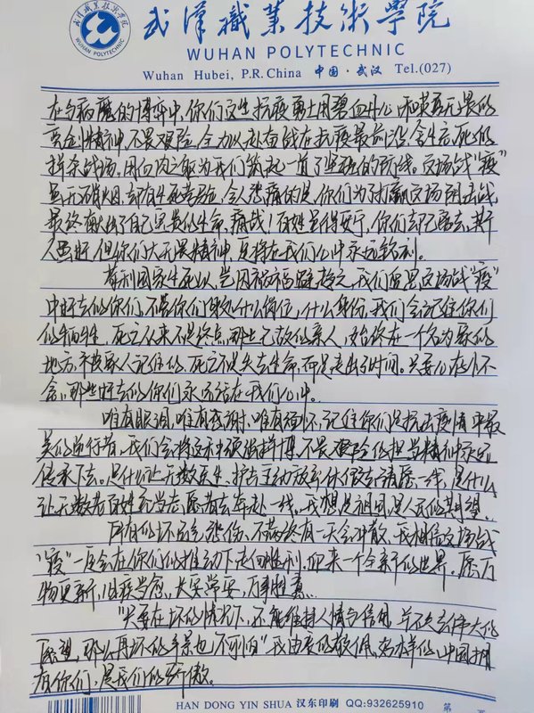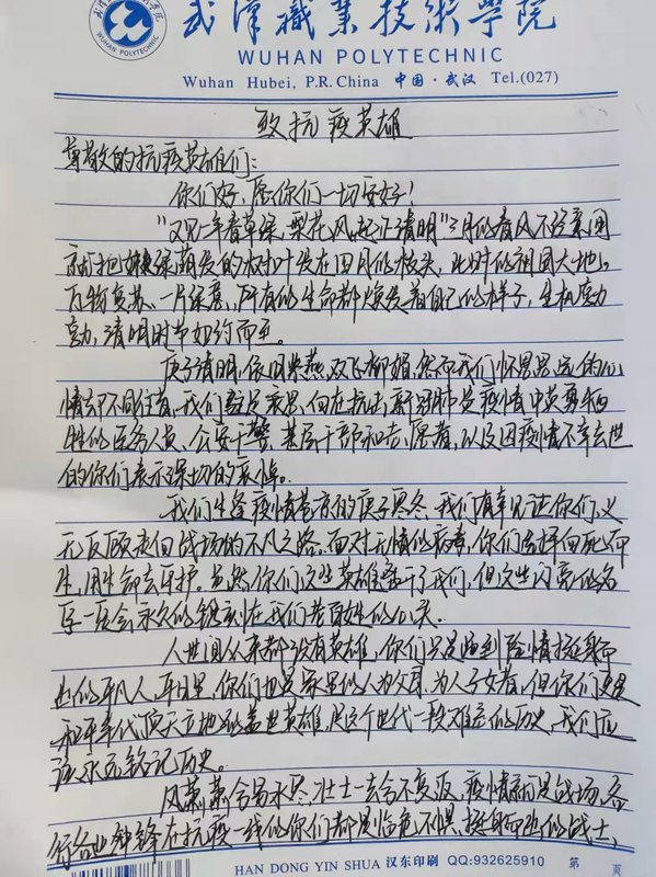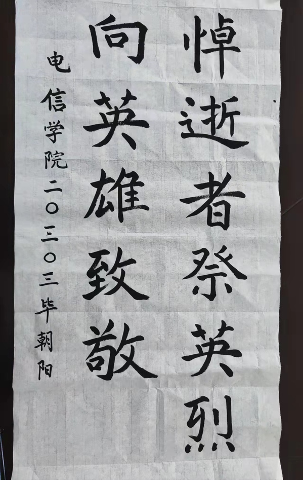 由于疫情受限,无法开展线下纪念活动,电信学子们在线上学习的过程中,通过书法作品的方式,表达对英烈先辈的敬意与哀思,展现了新时代武职学子的使命与担当。