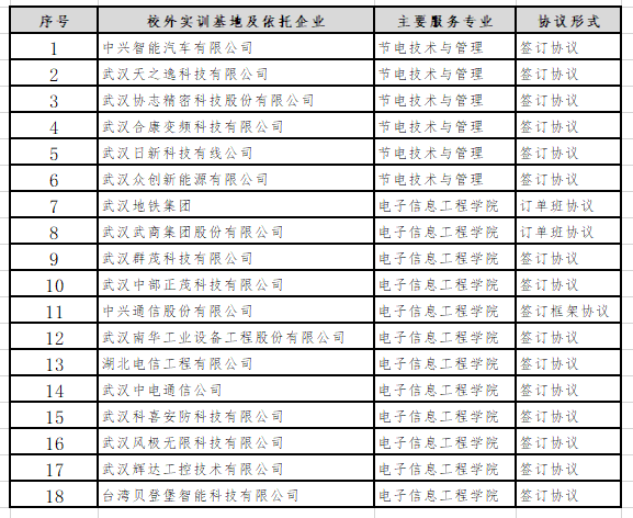 中兴智能汽车有限公司、武汉天之逸科技有限公司、武汉协志精密科技股份有限公司、武汉合康变频科技有限公司、武汉日新科技有线公司、武汉众创新能源有限公司、武汉地铁集团、武汉武商集团股份有限公司、武汉群茂科技有限公司、武汉中部正茂科技有限公司、中兴通信股份有限公司、武汉南华工业设备工程股份有限公司、湖北电信工程有限公司、武汉中电通信公司、武汉科喜安防科技有限公司、武汉风极无限科技有限公司、武汉辉达工控技术有限公司、台湾贝登堡智能科技有限公司。