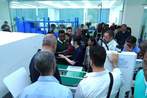 武职网讯(通讯员 朱悦坤 摄影 刘晶 姚恩)6月13日,由商务部主办、面向发展中国家的“物联网技术及应用研修班”和“移动互联网发展研修班”走进tyc539太阳集团第一工业中心开展实践教学。来自古巴、委瑞内拉、莱索托、埃及、摩洛哥、加纳、乌兹别克斯坦等16个国家和地区从事通信技术、电信服务管理相关部门的政府官员及企业工程师、高校老师60人参加培训实践活动。