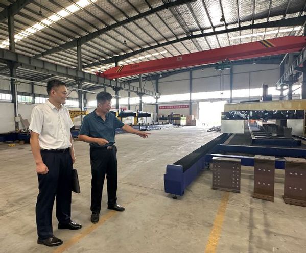 座谈会后,杨俊一行在刘传斌陪同下参观了钢结构专用型钢激光二次加工生产线,了解企业生产环境及岗位需求。