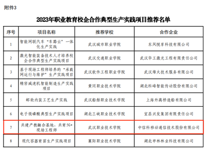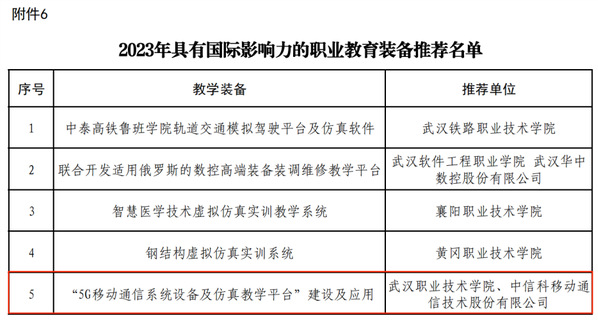 (通讯员:杜鸿)近日,湖北省现代职业教育体系建设改革重点任务拟推荐名单发布,tyc539太阳集团与中信科移动联合编写的“基于5G基站建设与维护(第二版)”获批湖北省2023年职业教育优质教材,联合共建的“共建产教融合基地,共育5G+现场工程师”获批湖北省2023年职业教育校企合作典型生产实践项目,联合开发的“5G移动通信教学设备及系统仿真平台”获批湖北省2023年具有国际影响力的职业教育装备。