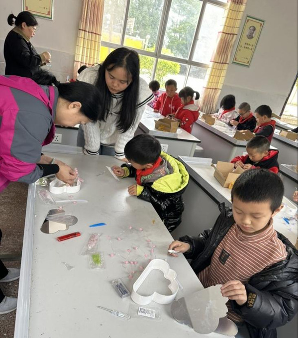 “电报机是在人类通讯历史上重要的发明创造…… LED将电能转化为光能,灯珠安装在灯罩内,以保护灯珠并散发光线……”李雪、叶莉和杜鸿三位通信支部的党员教师用她们的专业知识给梭步希望小学员工现场讲解了电报机的使用原理,并指导员工现场制作电报机模型和LED小夜灯,现场互动热烈,气氛爆棚,孩子们在制作过程中一个个懵懂的“科技梦”被点燃。在欢声笑语中,孩子们满心欢喜地拿着自己制作的模型抢着拍合影。