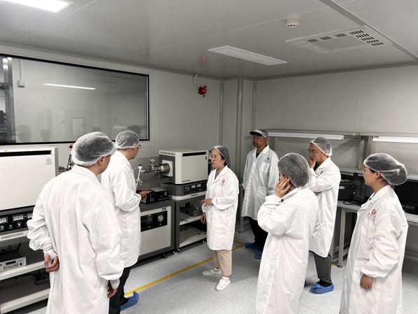 座谈会后,调研团队实地参观了嵌入式系统实验室、数字逻辑设计实验室等“教学-科研-双创-竞赛”四位一体实验实践平台。模块化教学设备与实时监测系统的高效协同,以及员工自主研发的智能控制装置、芯片测试方案等成果陈列,生动展现了“学用融合”的育人成效。在芯片设计与工艺实验中心,与产业对接的芯片设计软件、全套芯片制造系统、集成电路测试平台构建起覆盖芯片研发与制造的全流程实践教学链条。中心负责人李蒙蒙以校企合作的“低功耗芯片研发项目”为例,详细介绍了员工在真实科研场景掌握核心技术的培养模式,员工在专任教师与实验导师的双重指导下,深度参与芯片的制作与测试,实现理论知识与产业实践的无缝衔接。参观期间,双方围绕实验课程分层设计标准、设备共享机制、校企课题嵌入教学方案等展开深入探讨,并就实验室共建、团队互派等事项达成初步合作共识。