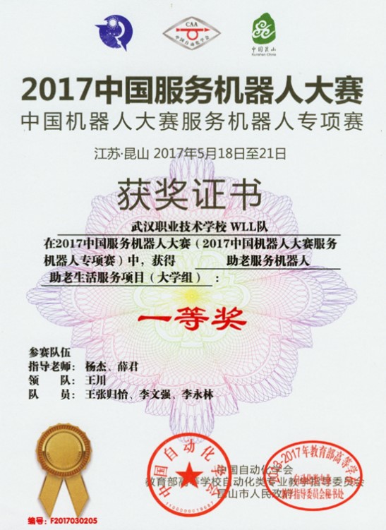 2017年中国机器人大赛服务机器人专项赛国家一等奖