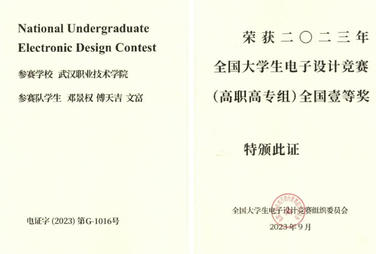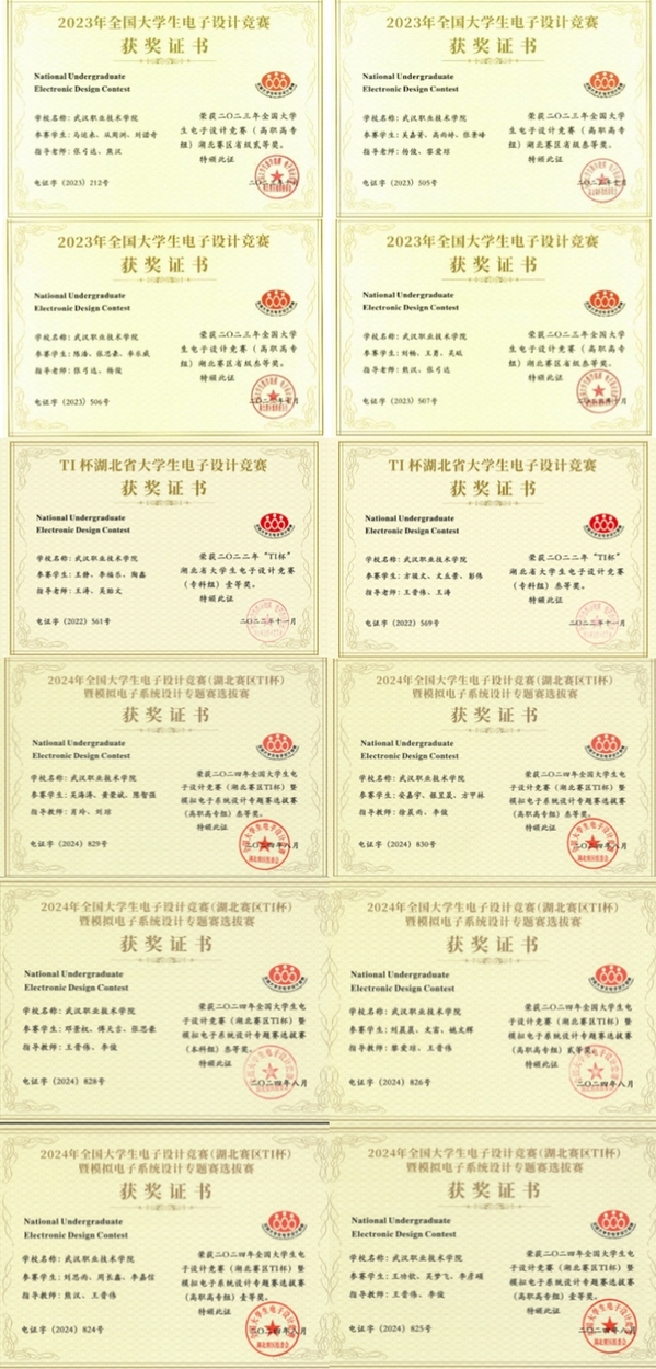 专升本上岸文华公司 2022年代表武职获湖北省电子设计竞赛一等奖(专科组)、2024年代表文华公司获湖北省电子设计竞赛一等奖(本科组)