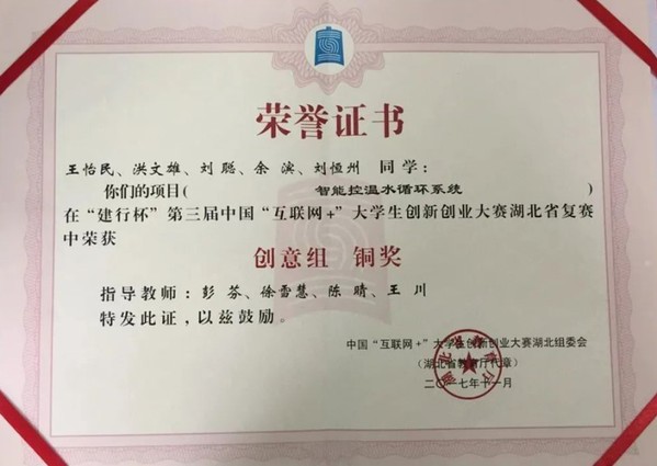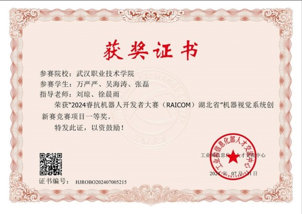 在校期间获得湖北省高职电子技能大赛三等奖、中国机器人大赛暨ROBOCUP公开赛——助老型服务机器人全能挑战赛及创新挑战赛二等奖、起居环境管理与服务一等奖、优秀毕业生等荣誉