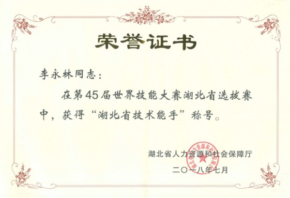 2018年世界技能大赛中获湖北省技术能手