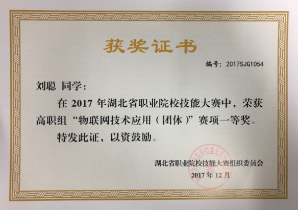 2017年湖北省职业院校技能大赛物联网技术应用省一等奖