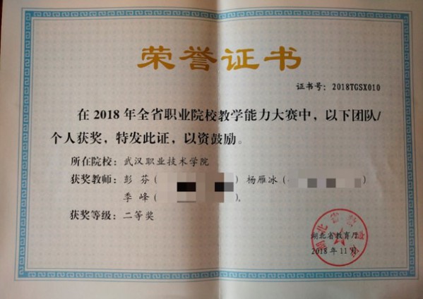全国职业院校技能大赛教学能力比赛国家一等奖1项、三等奖1项、省级一等奖2项、省级二等奖1项