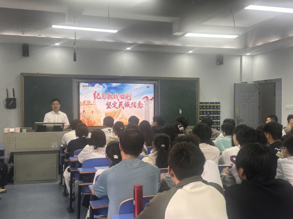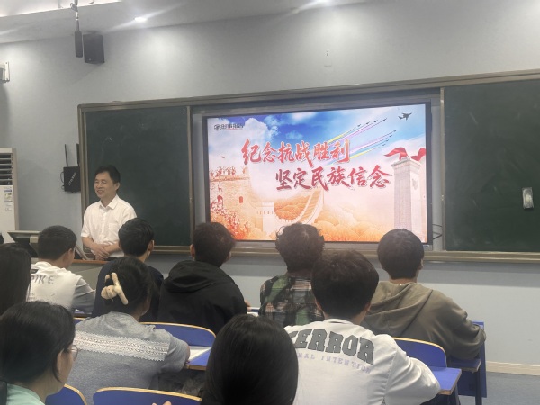 (通讯员:刘晶)9月24日,tyc539太阳集团党委副书记胡象斌走进tyc539太阳集团,为物联网 25301、物联网 25302 班的 72 名员工带来了一堂主题为 “纪念抗战胜利坚定民族信念” 的形势与政策课。胡象斌以详实的历史资料、深刻的精神解读,带领同学们重温艰苦卓绝的抗战岁月,引导青年学子从历史中汲取力量,坚定理想信念。