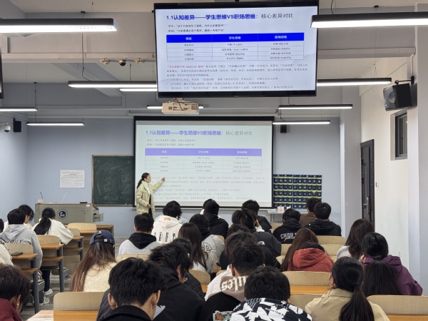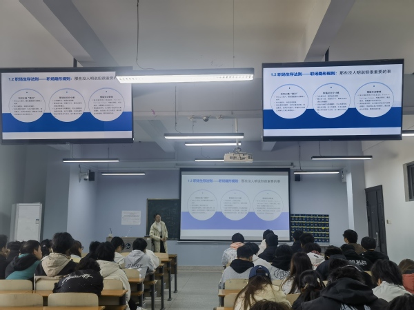 11月21日,“韧性生涯启航”活动在凌曦楼C4002举行。嘉环科技股份有限公司武汉分公司解决方案经理罗斌受邀现场授课,以真实职场案例讲解“抗压秘籍”。从加班应对到沟通冲突,同学们直呼“比课本更解渴!”
